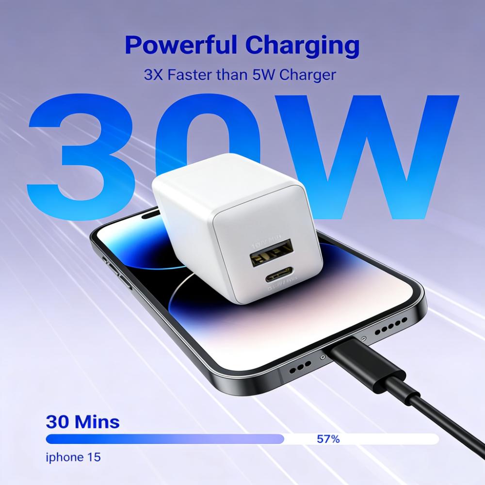 30W GaN 2-Port Charger (USB-C + USB-A) with Foldable Plug