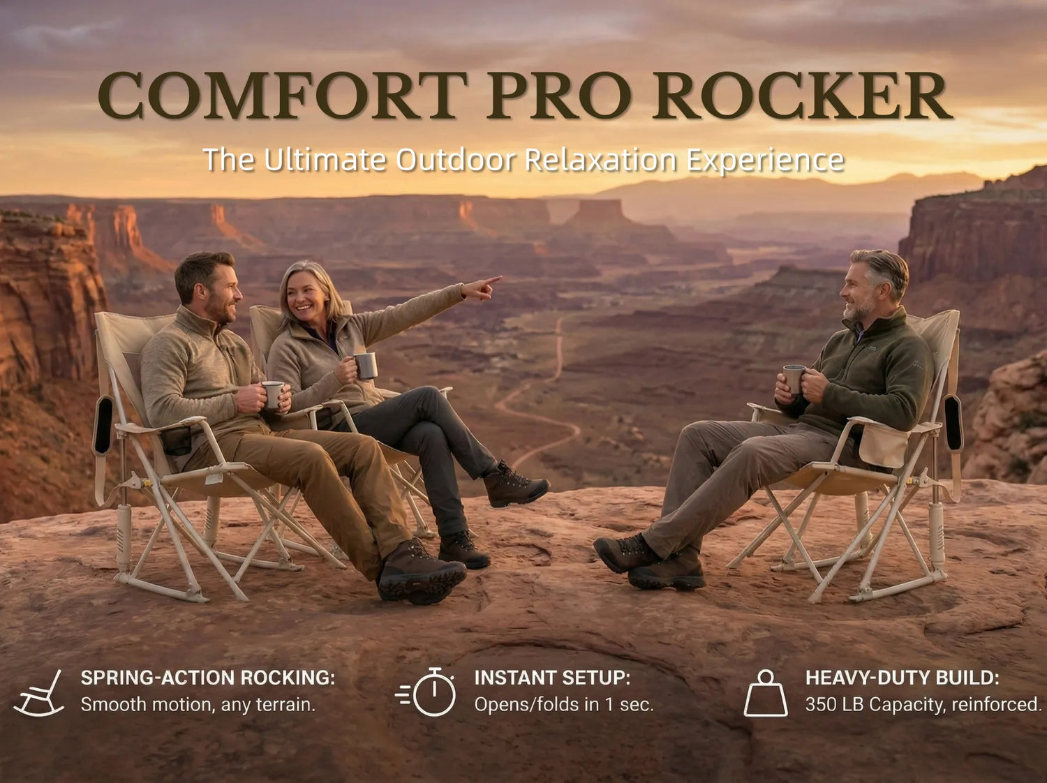 Robust X-Frame Technology. Expands instantly without assembly. The heavy-duty structure locks fast, creating a sturdy seat in seconds.